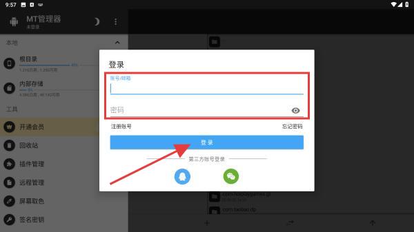 3、在登录窗口中:输入账号/邮箱和密码,点击登录的按钮即可。