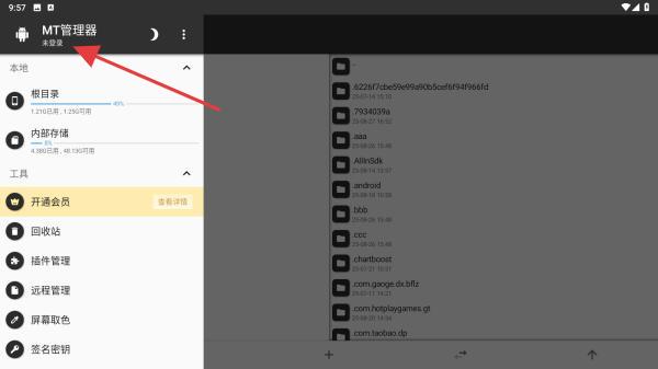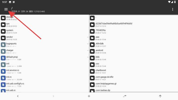1、打开MT管理器App,点击界面左上角的三横线图标,展开左侧侧边栏。