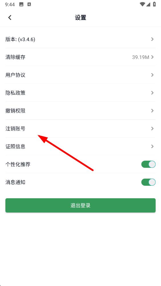 2、进入设置页面后,在下方找到注销账号的选项并点击。