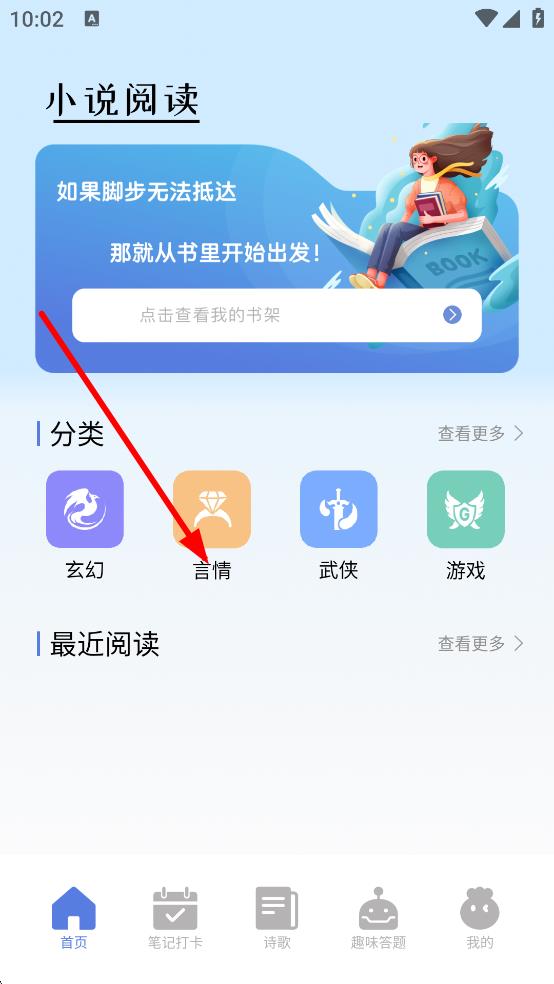 3、使用附加工具:返回软件首页,在“工具”或对应功能板块中,点击“诗歌阅读”“笔记打卡”等选项,按照提示操作,即可使用相应附加功能。