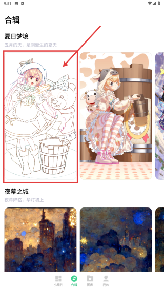 2、在合辑页面,选择夏日梦境合辑里的线稿作品,进入涂色界面。