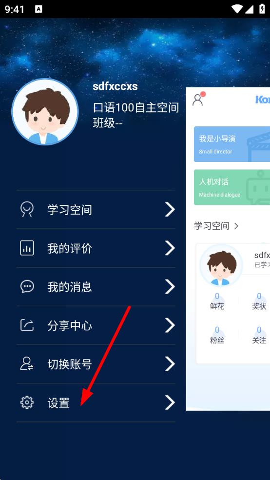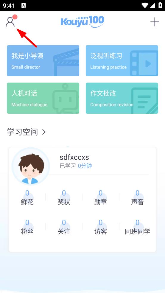 1、打开口语100 APP,点击左上角的头像图标,打开侧边菜单栏。