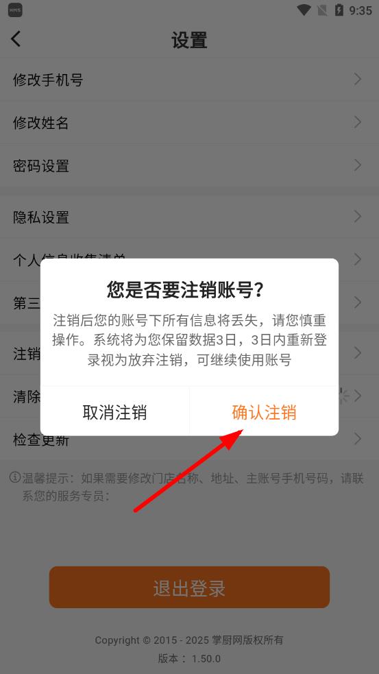 3、点击后会弹出确认提示框,确认要注销则点击确认注销按钮即可。