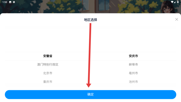 3、在地区选择中可以任意选择地区,选择完后点击确定按钮进行设置。