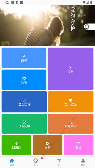 1、打开安全守护APP,点击底部导航栏的少儿选项,进入喜马拉雅少儿页面。