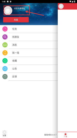 1、打开酷我相关娱乐应用,点击左上角头像区域,展开登录相关选项。