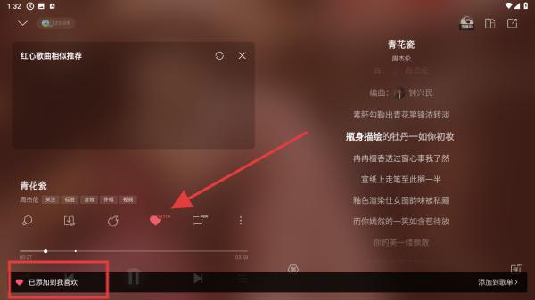 3、在此页面中找到爱心的图标进行点击,点击后显示已添加到我喜欢表示添加成功。