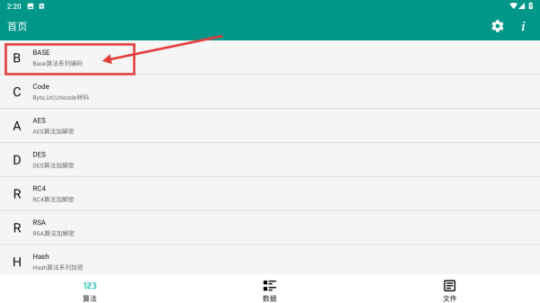 1、打开编码工具应用,点击BASEBase64系列编码选项,进入BASE编码界面。