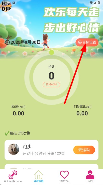 2、在运动记录页面,点击目标设置按钮,弹出每日目标设置窗口。
