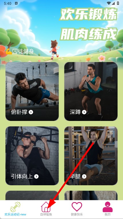 1、打开欢乐每天走,点击底部导航栏的自律锻炼,进入运动记录页面。