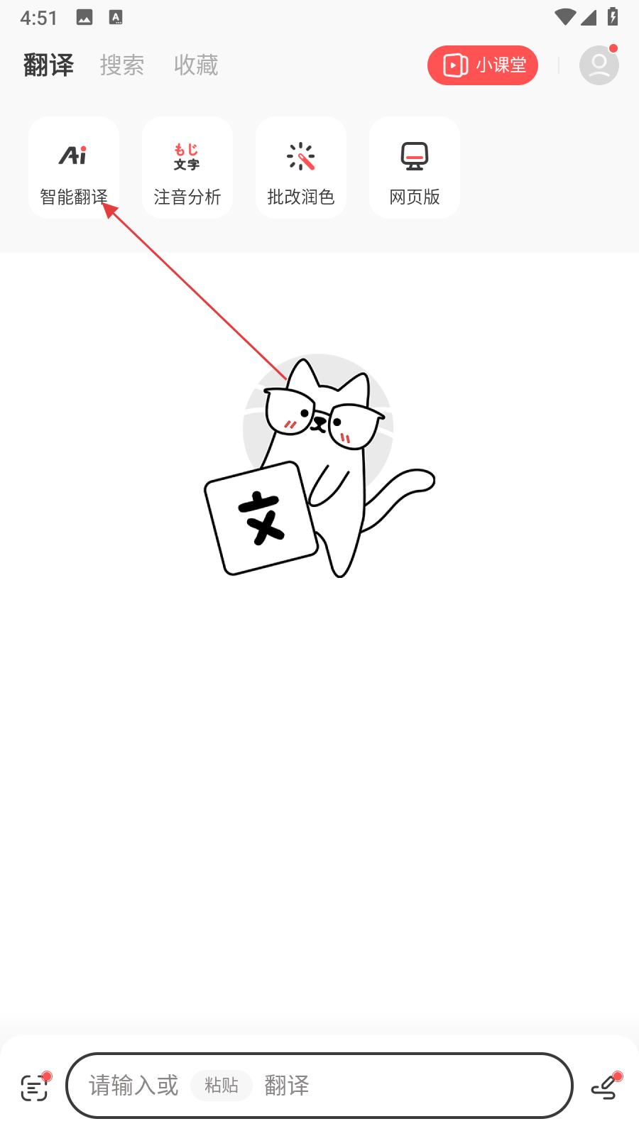 1、打开moji辞书应用,点击页面上方智能翻译选项,进入对话式翻译界面。