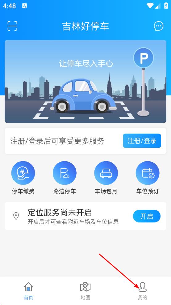 1、打开吉林好停车软件,在底部导航栏找到“我的”选项,点击该选项,进入个人页面。