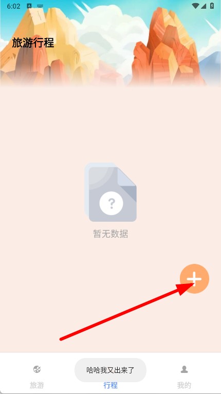 2、在旅游行程页面,点击右下角的橙色+按钮,弹出创建行程窗口。