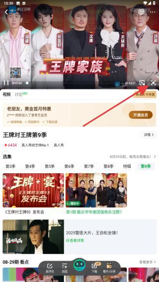 3、进入综艺播放页面后,会自动进行播放,点击右侧的按钮,即可全屏观看。