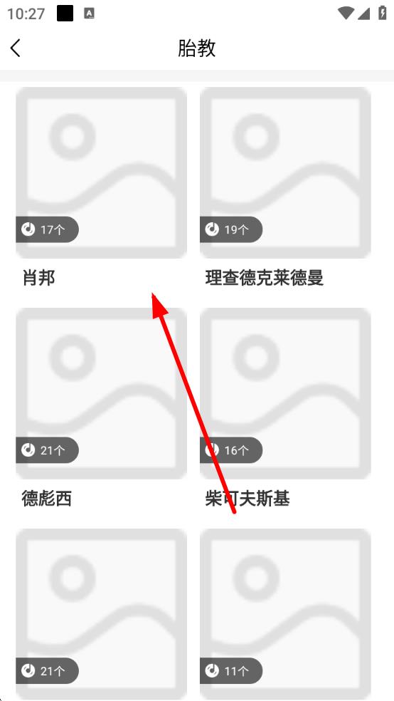 2、在胎教音乐分类页面,浏览各类音乐家的分类选项,比如点击肖邦进入其音频列表页面。