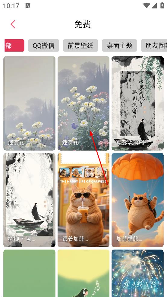 2、在“免费”壁纸页面,浏览展示的各类壁纸,找到自己喜欢的的壁纸,点击该壁纸,进入其详情展示页面。