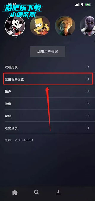 9、要进行下载剧集画质的修改,在设置页面点击「应用程序设置」
