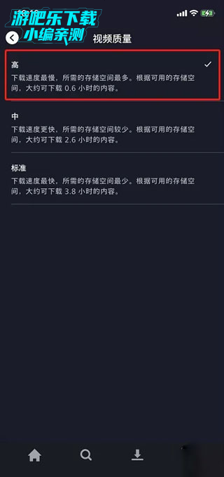 11、在页面中可选三种画质,这里选择「高」来保持下载剧集是高画质。