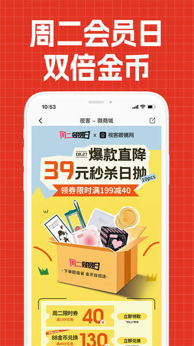 客户端上购眼镜送金币,金币免费换优惠券,与PC和微信商城同步哦!
