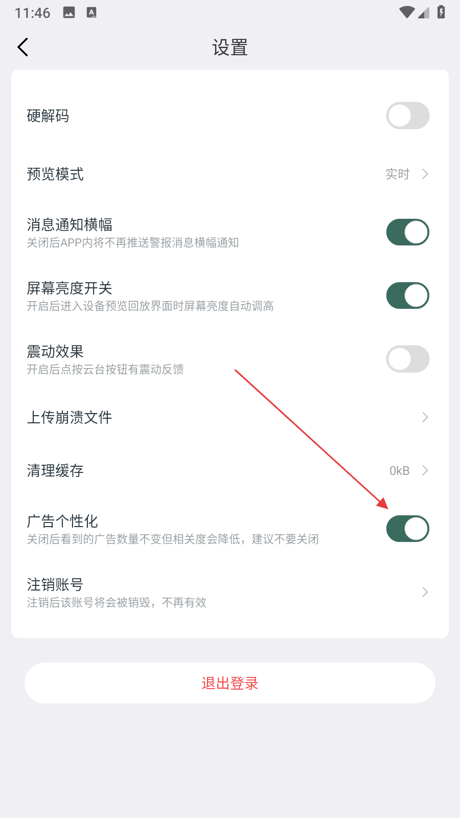 3、在设置界面中,找到广告个性化选项,点击其右侧的绿色开关按钮,将其关闭,完成广告个性化的关闭操作。