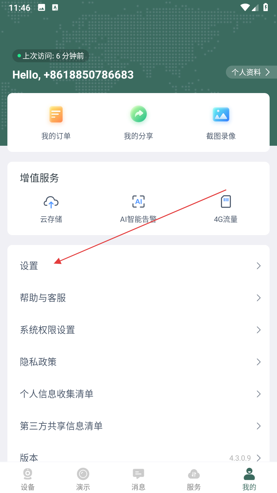1、打开镭威视云应用,点击底部导航栏最右侧我的选项,进入个人中心页面。