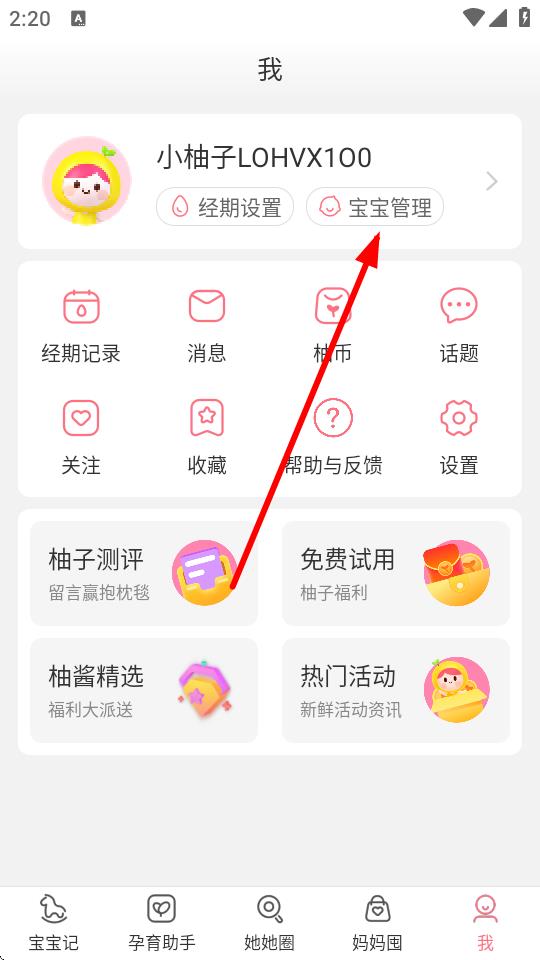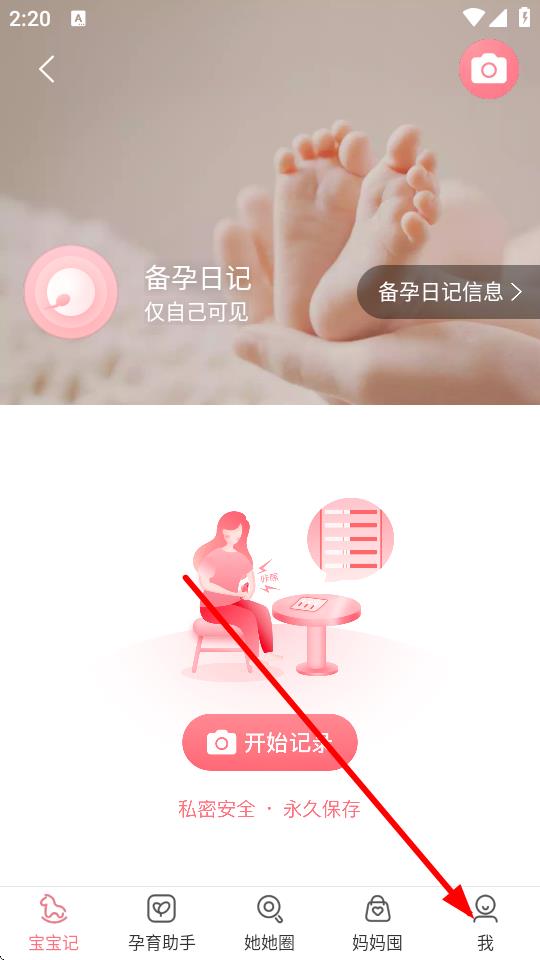 1、打开宝宝记应用,点击底部导航栏最右侧的我。