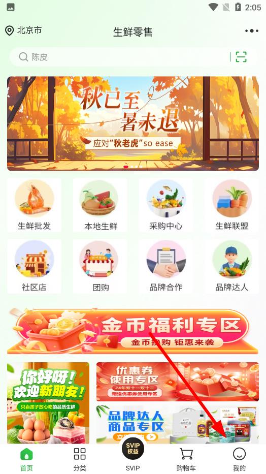 1、打开奇麟鲜品APP进入首页界面,点击底部导航栏最右侧的我的选项。