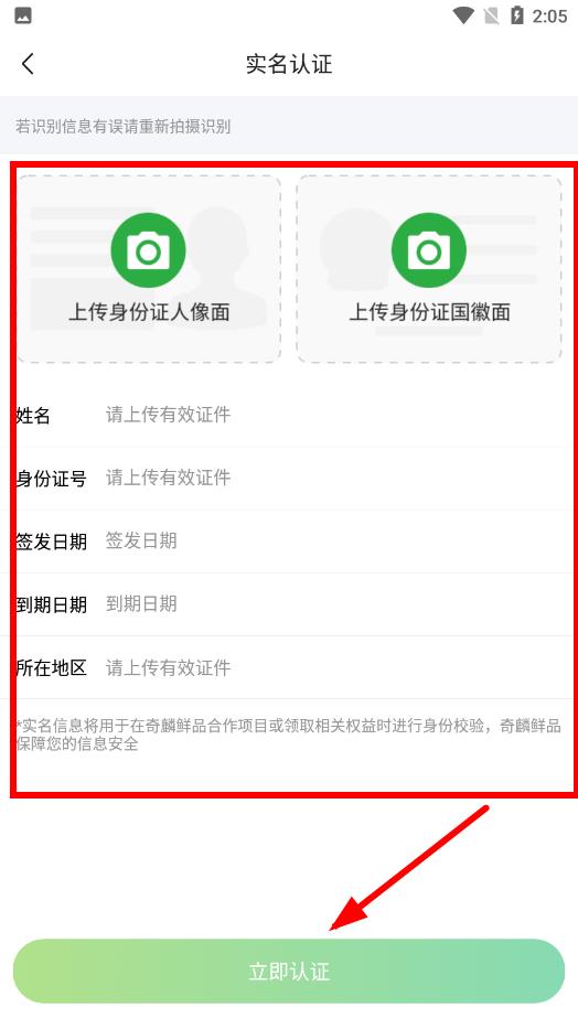 3、在实名认证界面,分别上传身份证人像面和身份证国徽面,系统会自动识别姓名、身份证号等信息,确认信息无误后点击立即认证按钮完成实名认证。