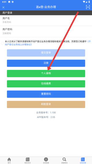1、在邕e登业务办理页面中,可以点击选择个人查档按钮,进行对个人的查档操作。