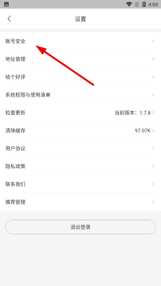 2、进入设置页面后,找到并点击账号安全选项,进入账号安全相关设置界面。