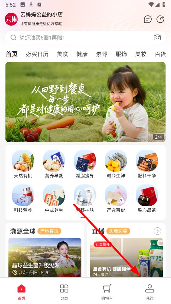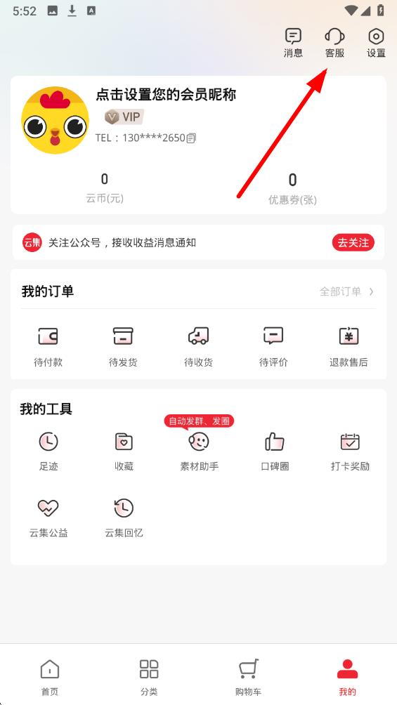 1、打开云集app点击底部导航栏中的我的图标进入个人页面。