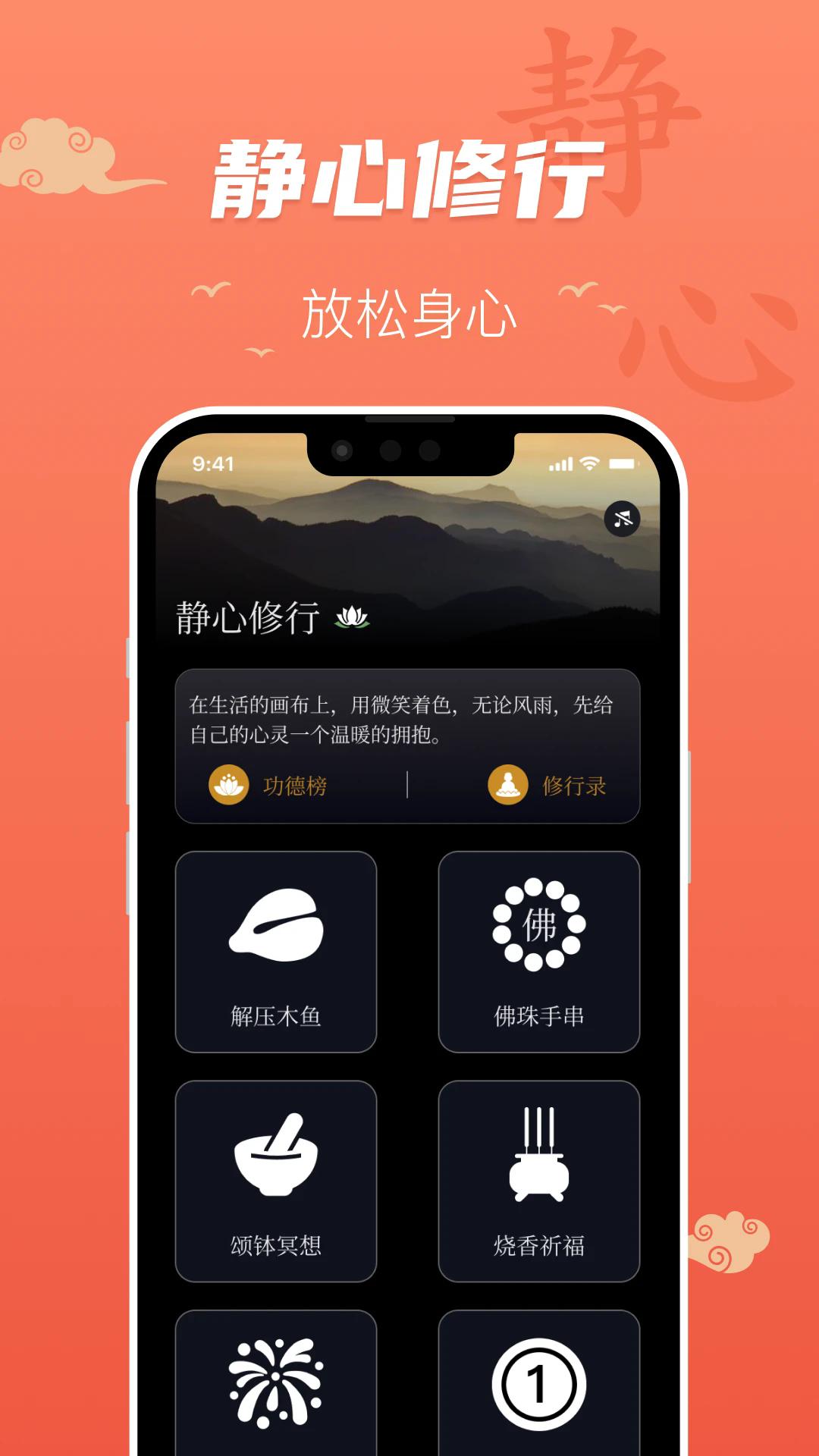 5、而且软件还能提供静心木鱼功能,该功能模拟了真实的敲木鱼的特点,能带给你非常逼真的使用体验。