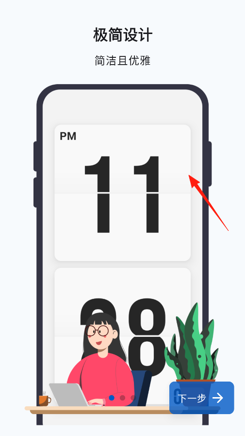 1、采用极简设计风格,界面简洁又优雅,时间显示清晰明了,数字大且直观,能让你一眼就看清时间,用起来特别舒服。
