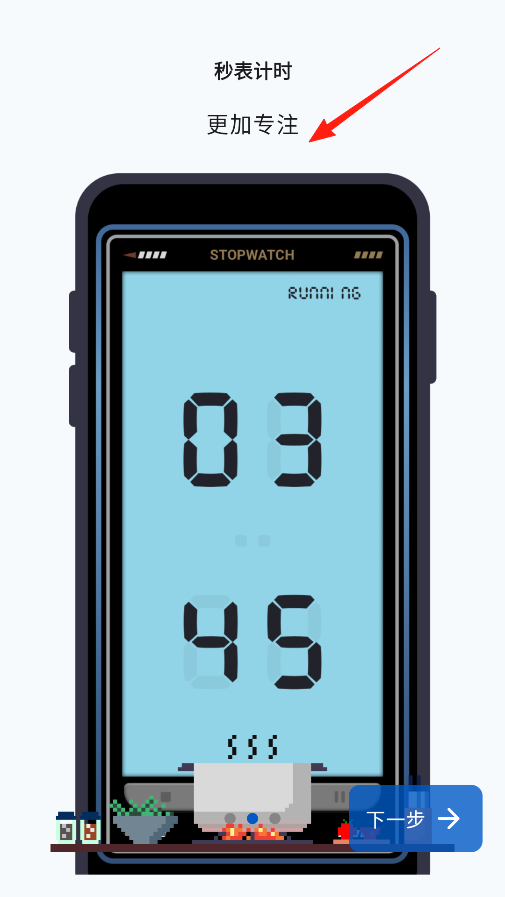 2、有秒表计时功能,开启后能帮你更专注地做事,它的计时界面很有特色,像素风格的数字显示,就像复古小工具一样,计时过程中也能给你不一样的视觉体验。