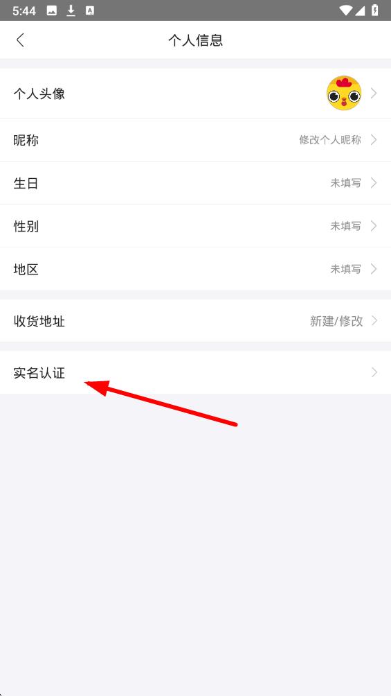 2、在个人信息界面中找到实名认证选项,即可进入实名认证相关页面。