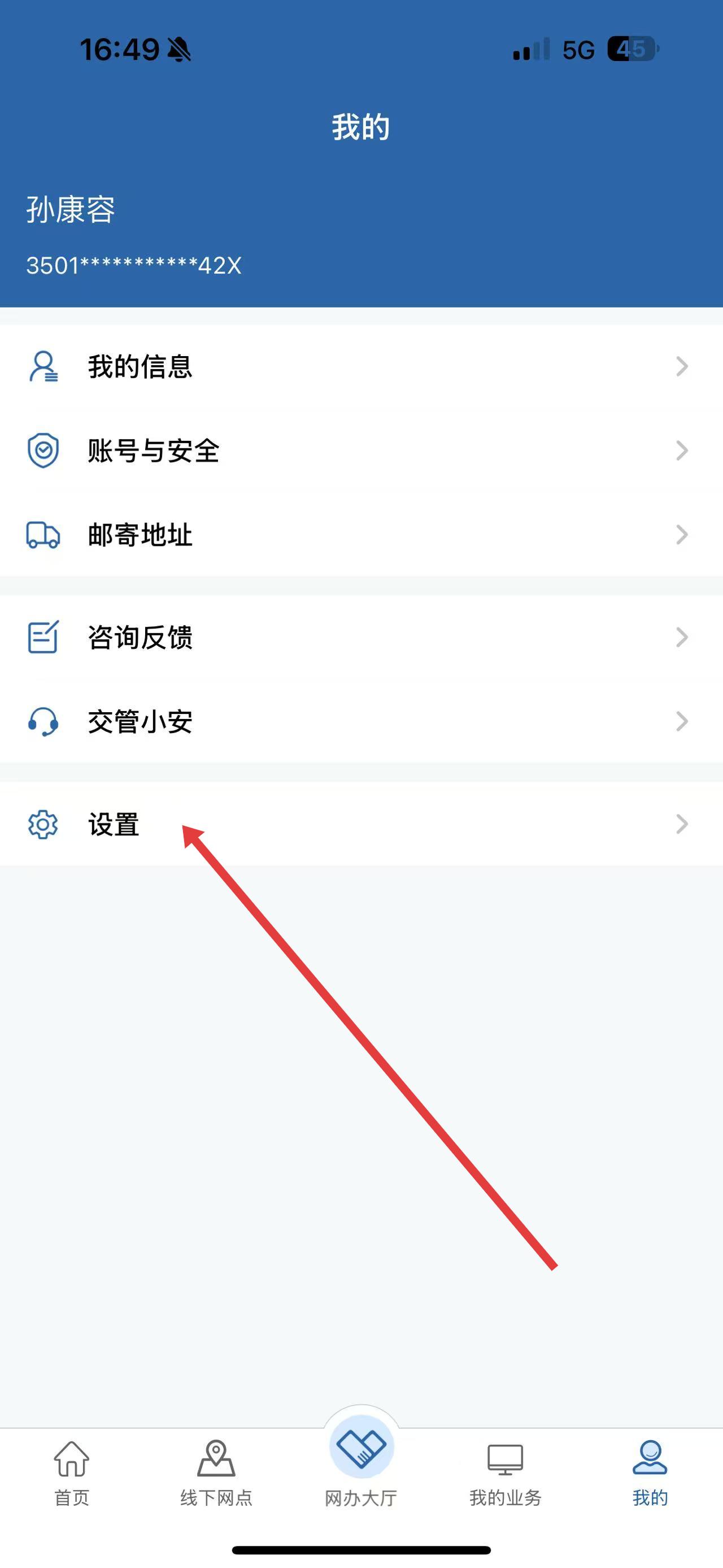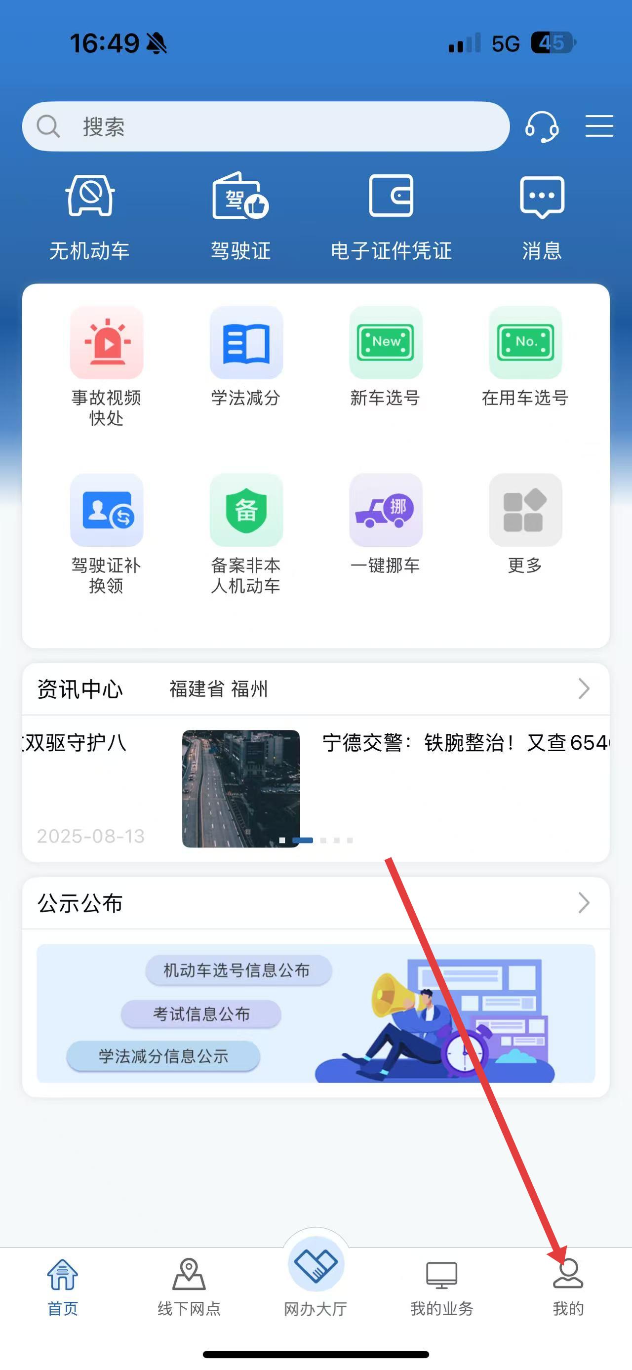 1、打开交管12123 APP,点击底部导航栏中的我的选项,进入个人中心页面。