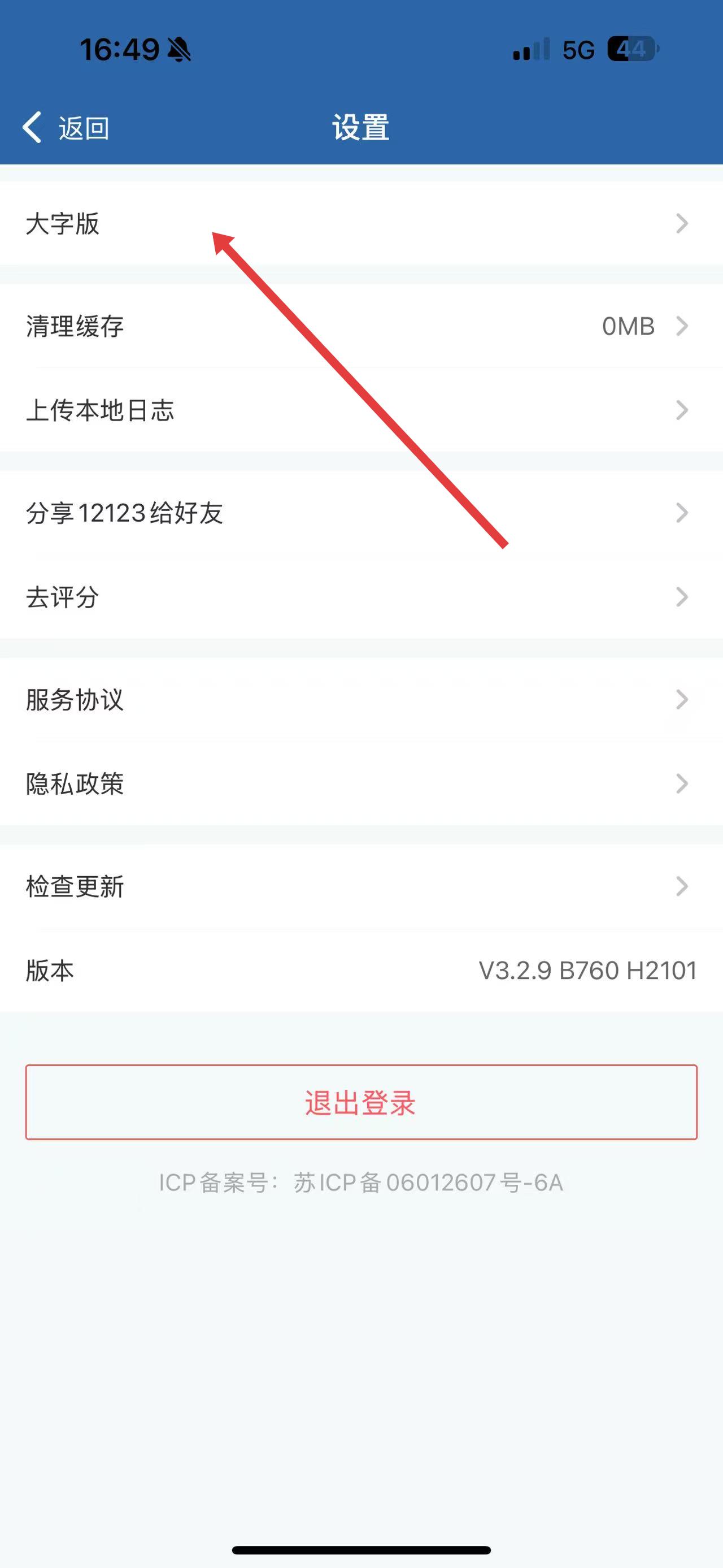 3、在设置界面中,点击大字版选项,按照后续提示完成大字版的设置启用操作。