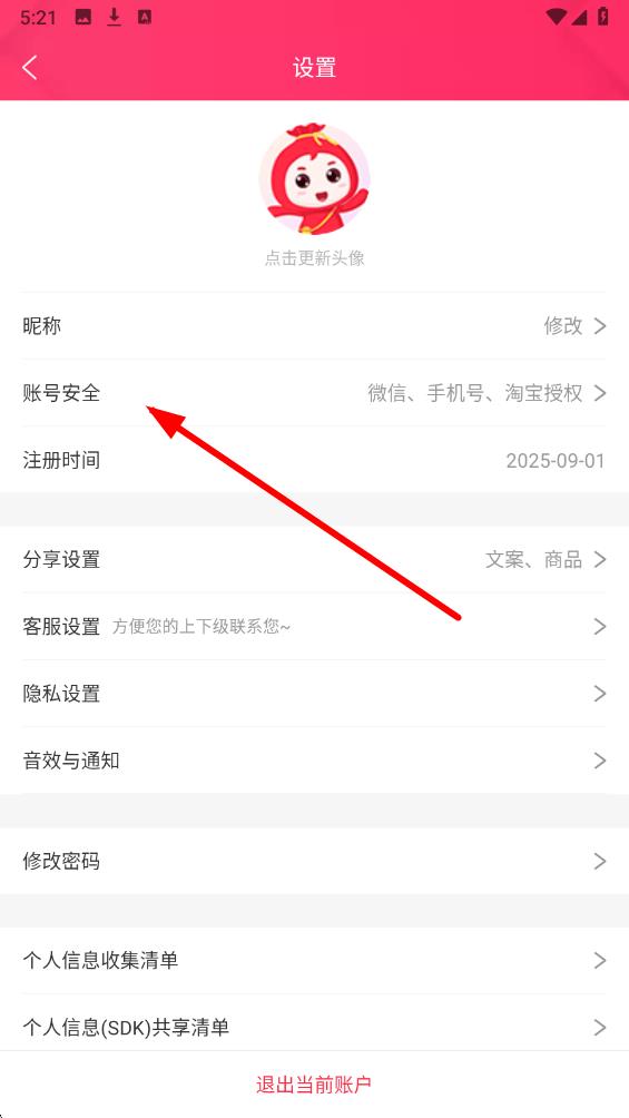 2、进入设置页面后,找到账号安全选项并点击,点击账号安全后,能看到微信绑定、手机号绑定等相关设置。