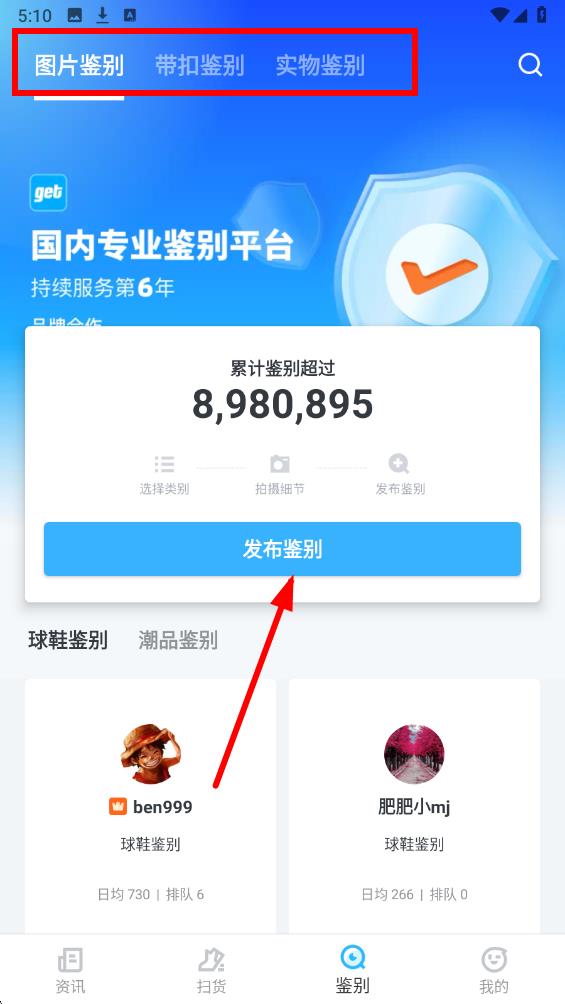 2、在鉴别页面上方,可看到不同的鉴别方式,选择适合自己的鉴别方式后,点击发布鉴别按钮,准备进行下一步操作。