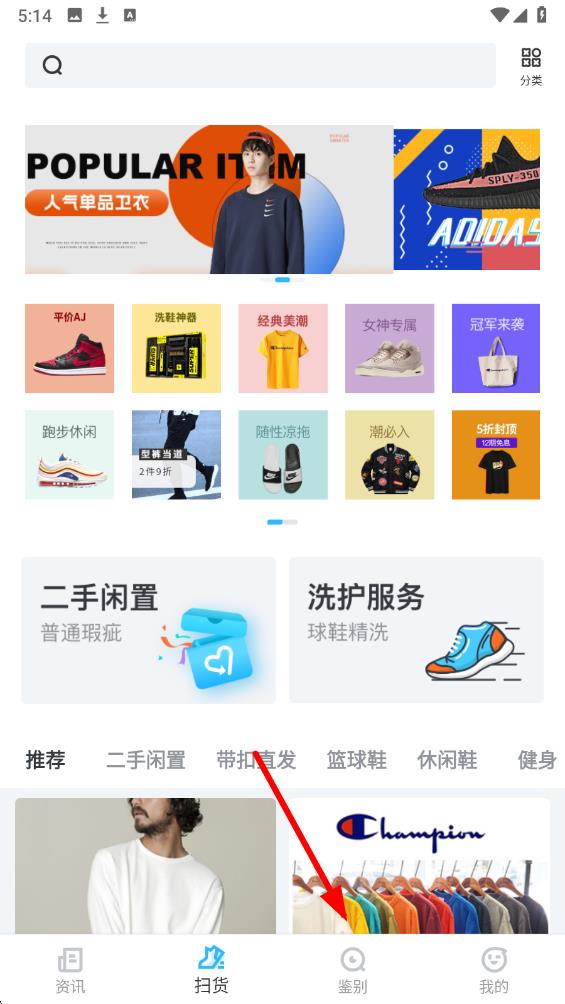 1、打开app进入首页,点击底部导航栏中的鉴别选项,进入鉴别功能页面。