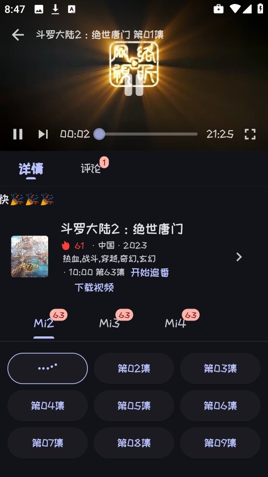 4、在播放界面,可以直接查看这部动漫的全部选集内容。