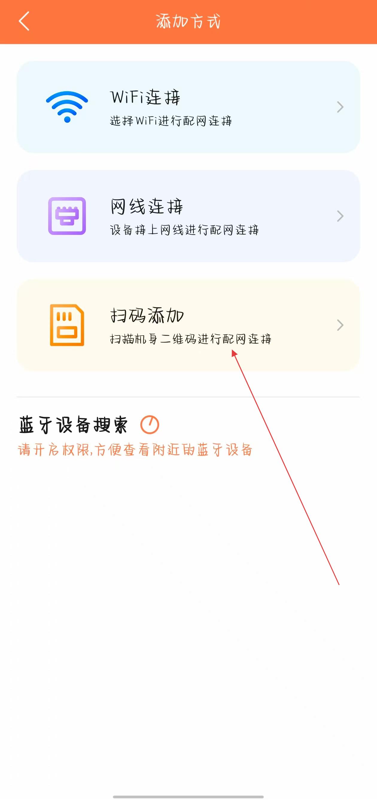 2、在添加方式页面,选择扫码添加选项,进入扫描二维码界面。