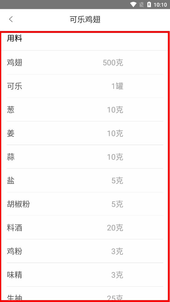 2、进入菜品详情页面后下滑页面,你可以清晰看到制作该早餐食谱所需的各种配料及其对应的用量等信息。