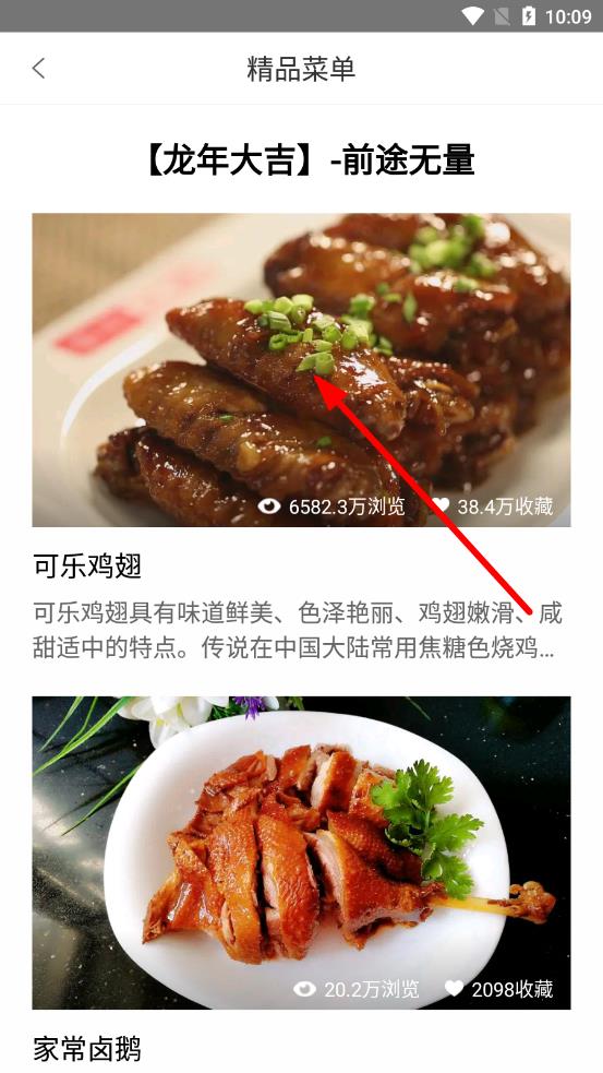 1、在美食类应用的精品菜单页面,找到你想要查看配料表的食谱,点击该菜品的区域。