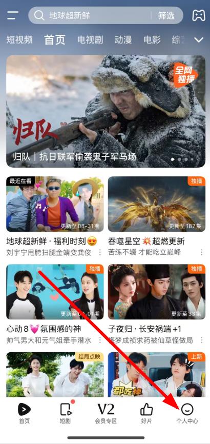 1、打开腾讯视频APP,点击底部导航栏中的个人中心。