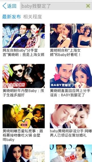 3、如想要看看对于baby我娶定了的新闻视频,就在方框中输入,baby我娶定了后,将会呈现大量的新闻视频