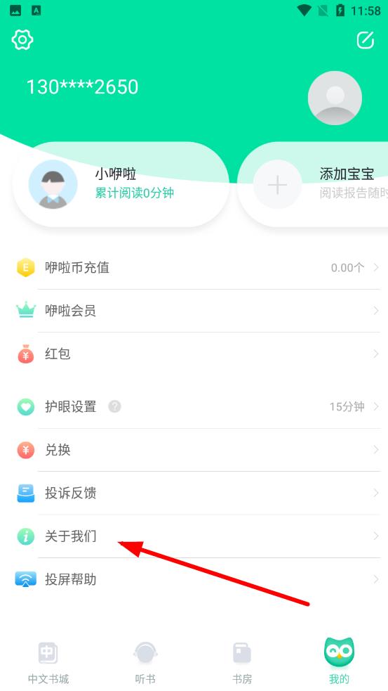 2、在我的页面中下方找到关于我们选项,点击该选项进入详情页面。