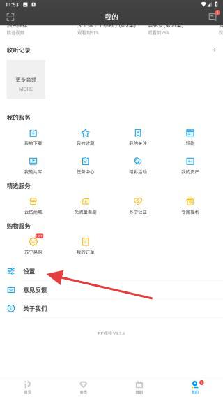 1、在我的面中,用户需向下滑动找到并点击设置选项。