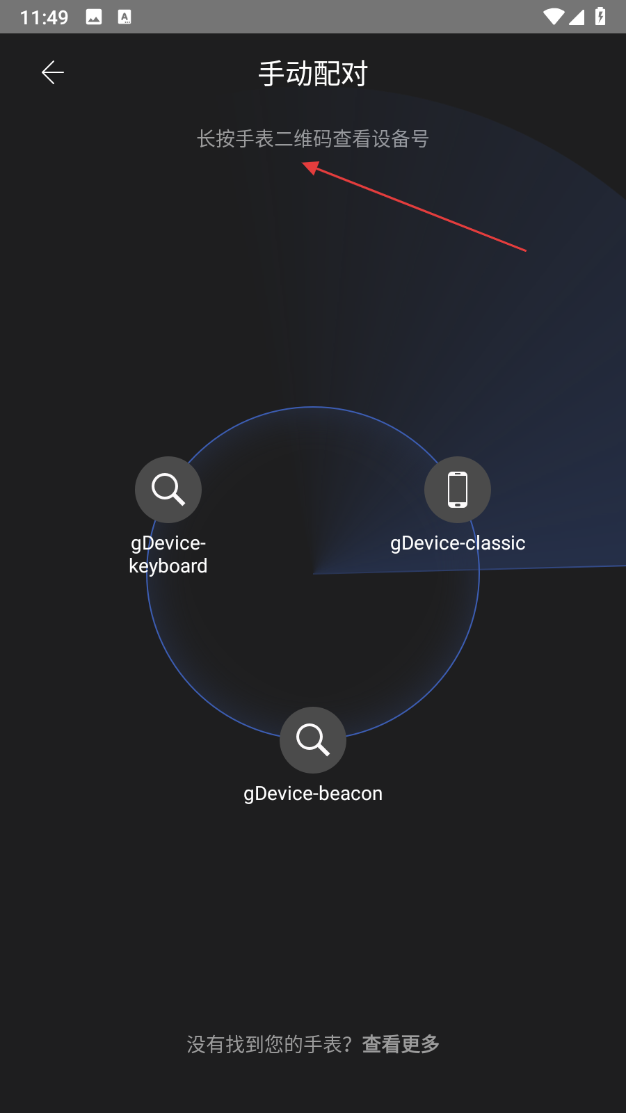 2、进入手动配对页面,找不到设备就点击下方查看更多,进入设备列表。