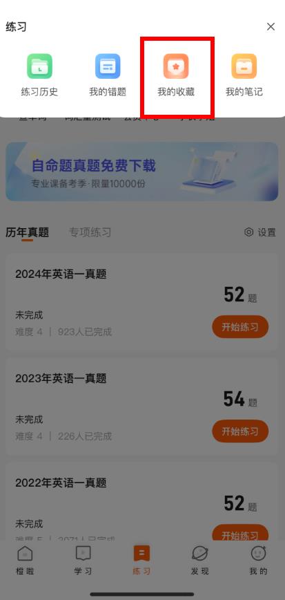 3、在弹出的菜单中,点击我的收藏,即可查看收藏的题目。